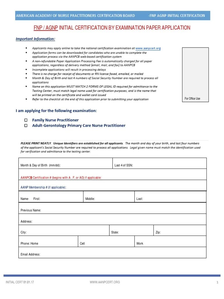 Application For AANP Certification Exam PDF Nurse Practitioner