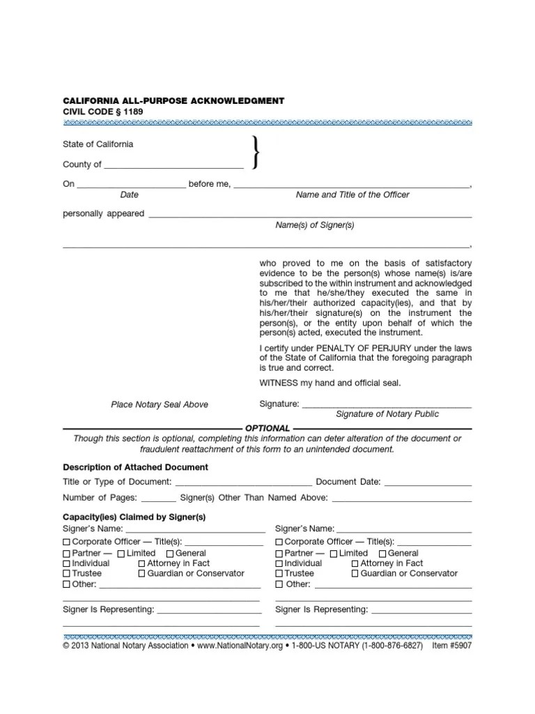 All Purpose Acknowledgement Form - Web notary acknowledgments are common for certain types of legal documents such as power of attorney, divorce papers, court documents, and any serious legal form. A notary acknowledgment is a sworn statement by a notary public who witnesses a person sign a document. An individual may seek to authenticate. Web the illinois notary acknowledgement forms are legal tools completed by a notary public for the purpose of signature authentication. Proof of execution by subscribing witness (download for nna members only) jurat with affiant. How to complete an acknowledgment. Web here are five steps for correctly performing an acknowledgment: