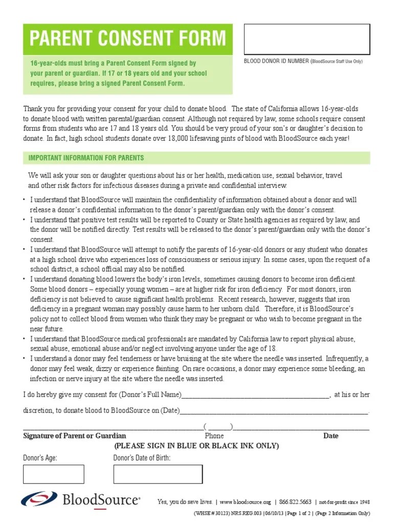 • consent must be made voluntarily, free from pressure or coercion. Weigh at least 110 lbs. Web • consent must be obtained prior to the intervention, except in certain extenuating circumstances. Web be at least 17 years old in most states (16 years old with parental consent in some states). Information about the treatment reason for treatment (diagnosis, condition, or.