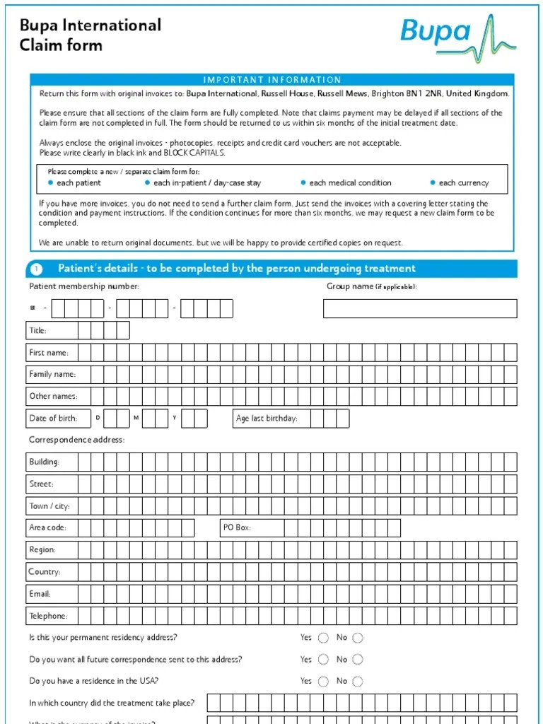 Bupa Claim Form Fill Online, Printable, Fillable, Blank pdfFiller
