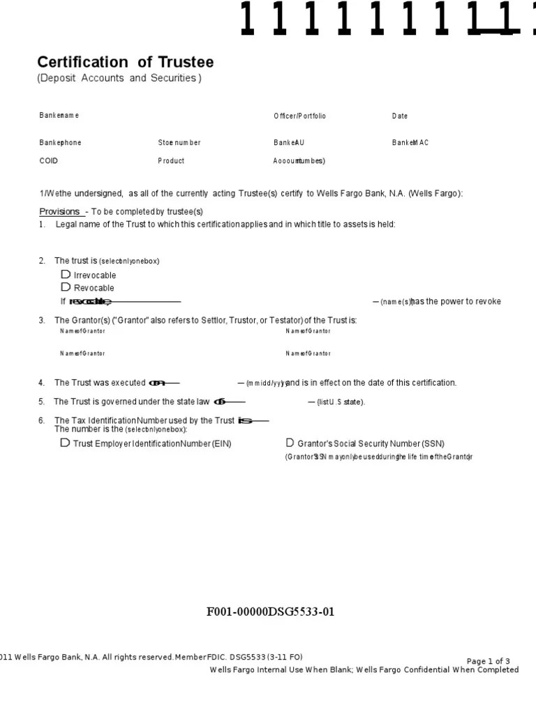 Wells Far Go Trustee Cert Trust Law Legal Documents