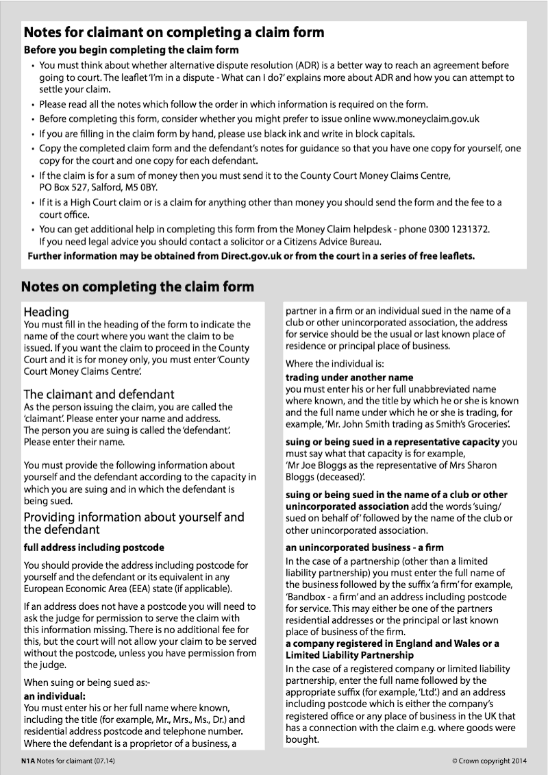 How to fill in the N1 Claim Form UK General Litigation & Small Claims