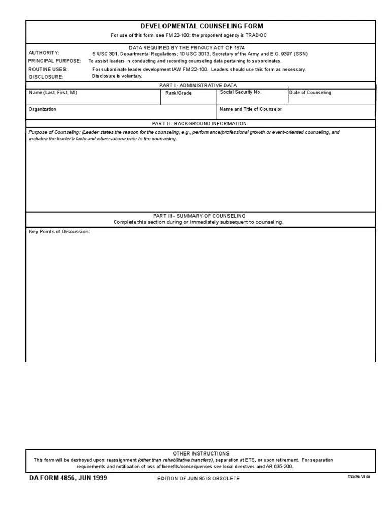 DA Form 4856 Sample Financial counseling, Counseling forms, Nursing