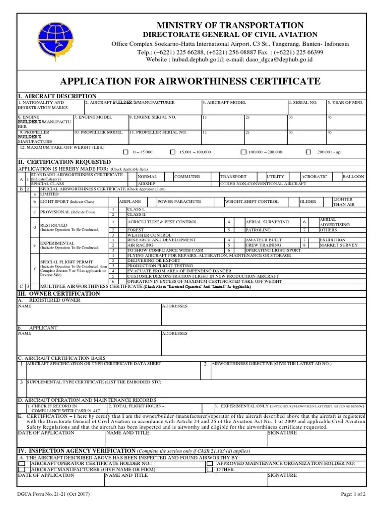 DGCA Form 2121 Application for Airworthiness Certificate Oct 2017(1