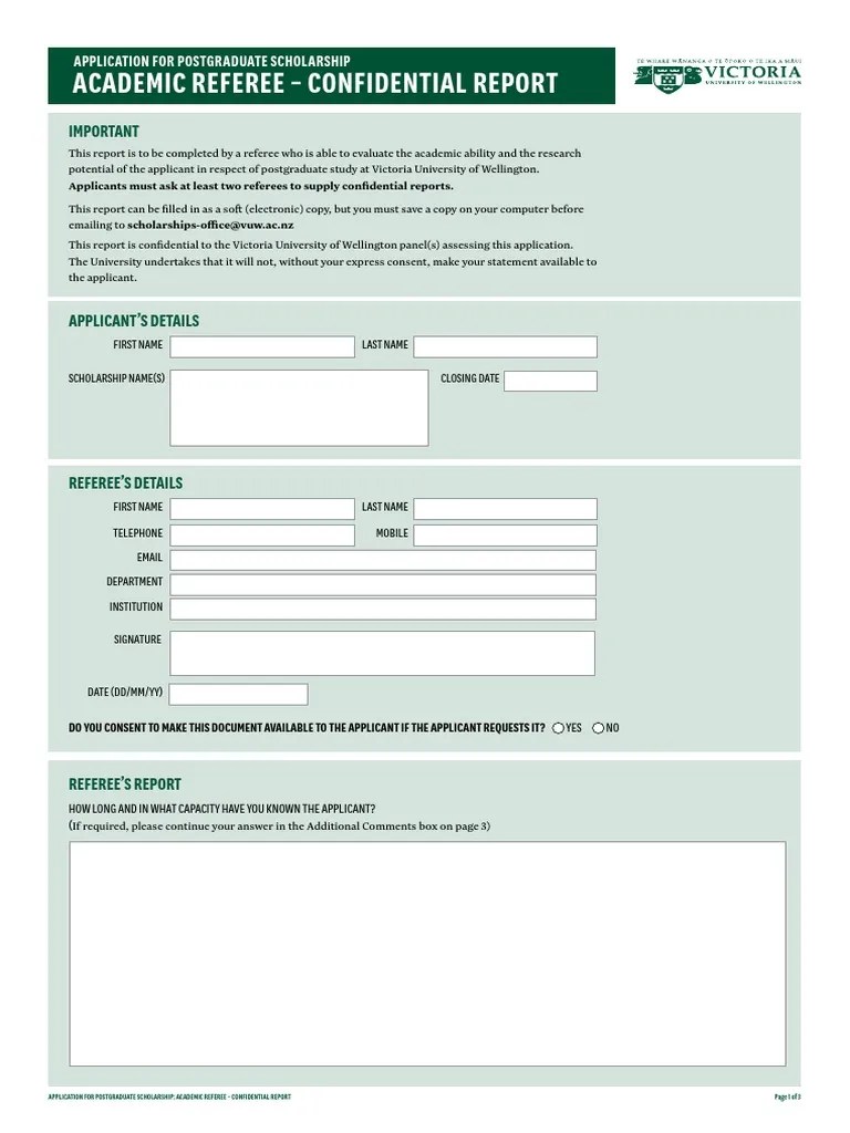 Postgraduate Scholarships Referee Form Postgraduate Education