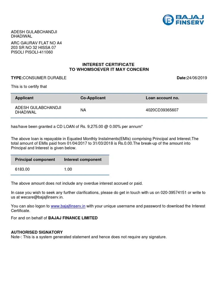 Interest Certificate