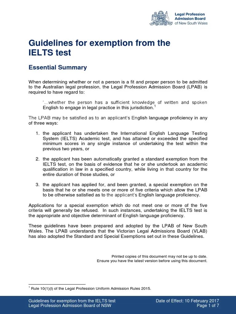Guidelines for Exemption From the IELTS Test Version 1.0 PUBLISHED