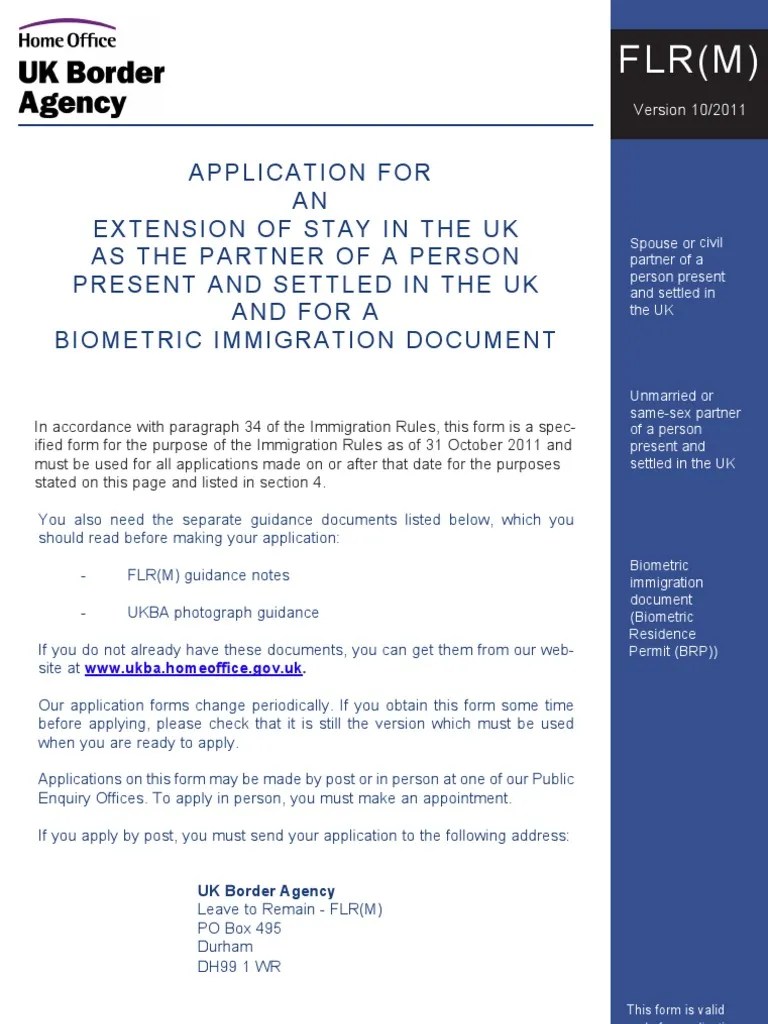 Web if you apply on form flr(m), you should submit all the evidence with your application otherwise you risk refusa for. You would apply for a flr m visa to extend your stay in the uk as the partner of someone who is present and settled in uk or someone who has been granted refugee status or humanitarian protection. To.