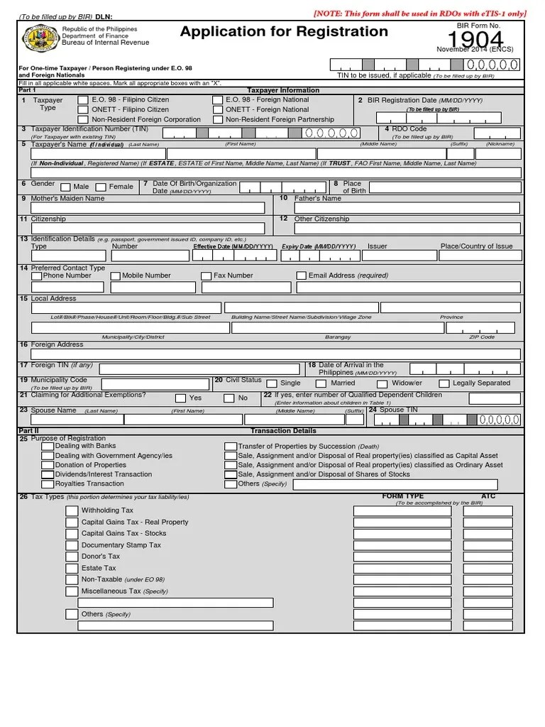 Bir Form 1904 Capital Gains Tax Withholding Tax