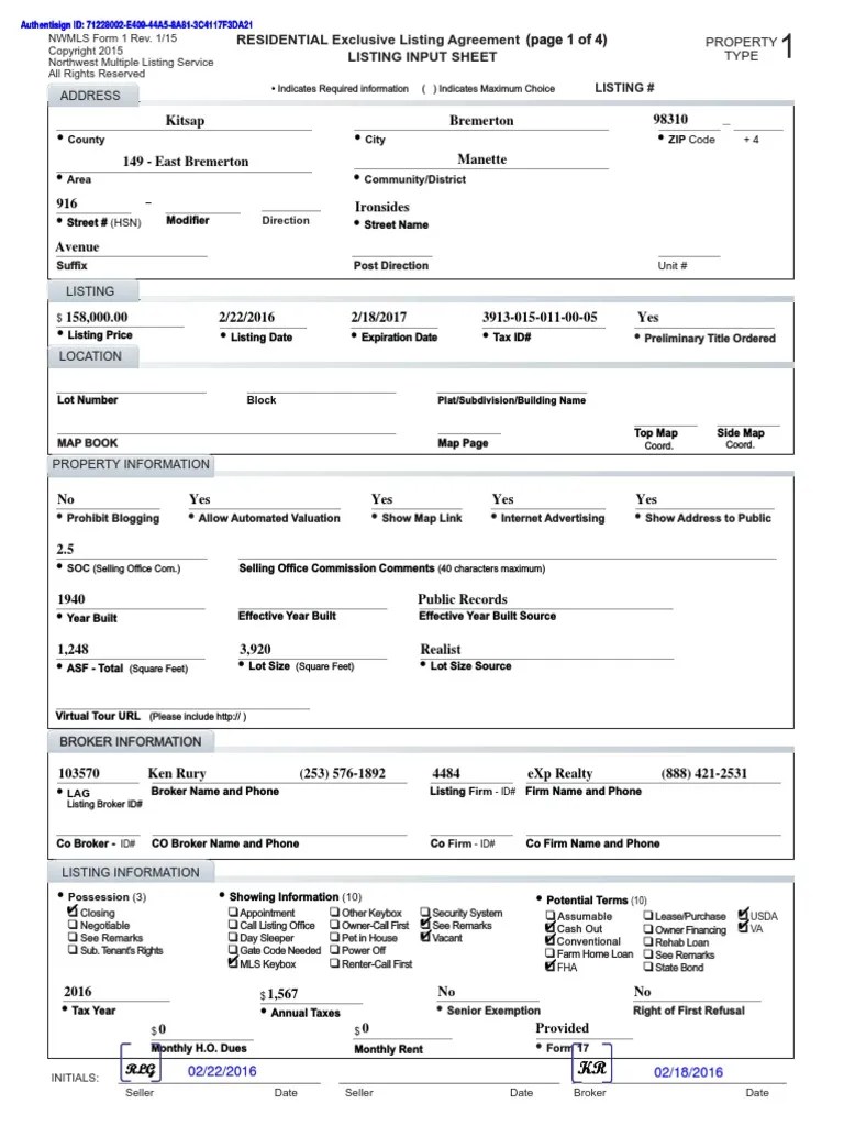 Form 1 Residential Listing Input Sheet Property Law Real Estate Law
