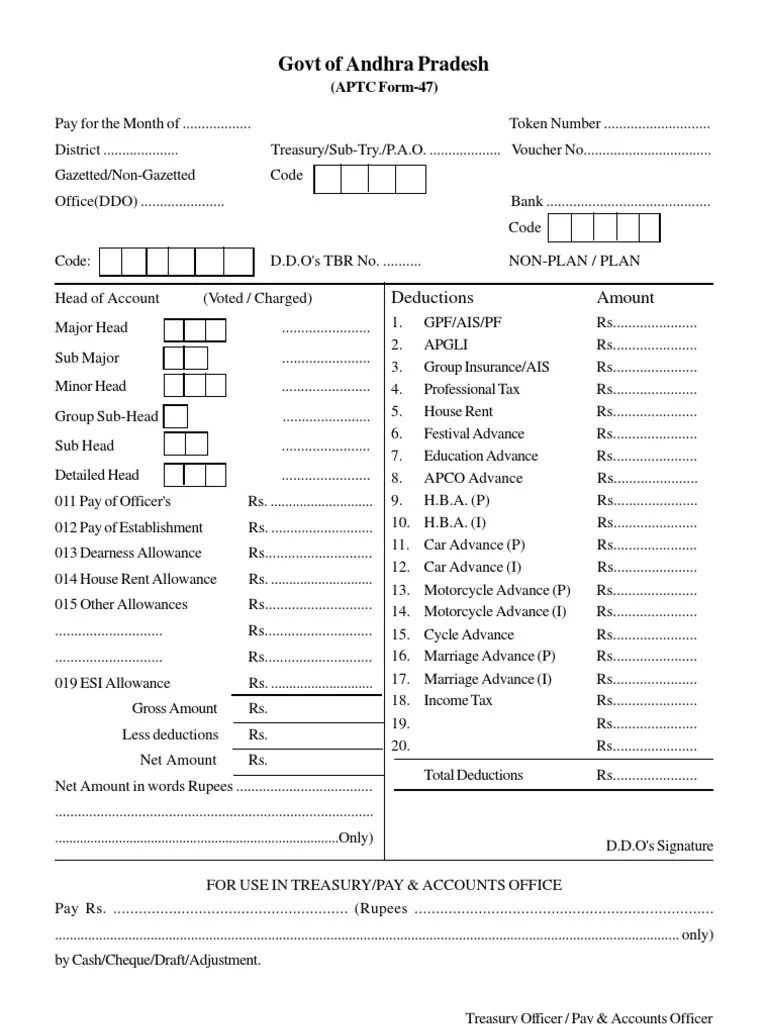 Pay Bill (Treasury APTC Form 47) Rupee Money