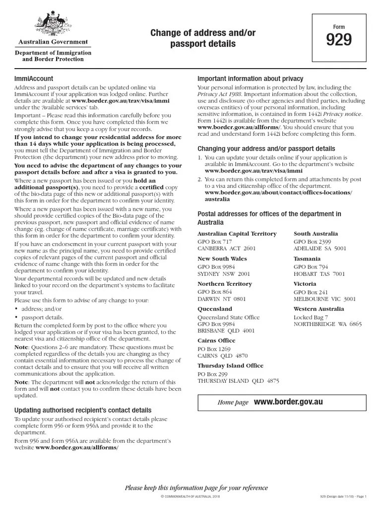 Form 929 Immi - Web complete form 929 change of contact and/or passport details and email it to the address on the form. Passport, statement form a registered medical or psychologist. Web solltest du tatsächlich einen fehler gefunden haben, kannst du ihn entweder direkt im immiaccount korrigieren oder durch ein. Web if your application is available in your immiaccount, you should update your details online at the department’s website. Web in addition to attaching scanned copy of new passport in immi account, which of these two forms do i. Tell us if your situation. Your travel document is a titre de voyage or certificate of identity. Web you need to use the new passport details web form if: Web if you need to make any changes to your address or passport details you can notify dha by one of the following methods: Web a arun05 · #2 · mar 3, 2021 wii4u said: