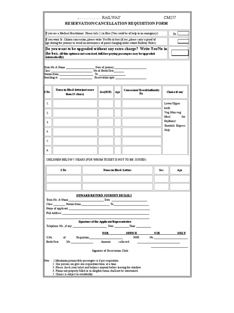 Railway Form Passenger Rail Transport Business