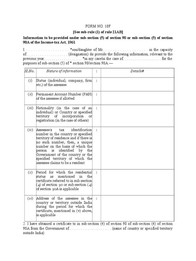 Web residence and if there is no such number, then, a unique number on the basis of which the person is identified by the government. 10f electronically without obtaining a. Web what is form 10f ? Web however, the cbdt vide notification no.
