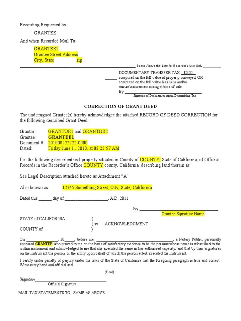 Web in texas, a correction deed is the deed issued to make changes to an erroneous deed, referred to as the corrected deed. Web sometimes we can’t help but make mistakes, it is human nature to do so. Web a correction deed, also known as a confirmatory or corrective deed, is a legal document used to fix errors on a property. Web a rectification deed is a legal instrument that allows you to correct any errors or mistakes in documents like sale.