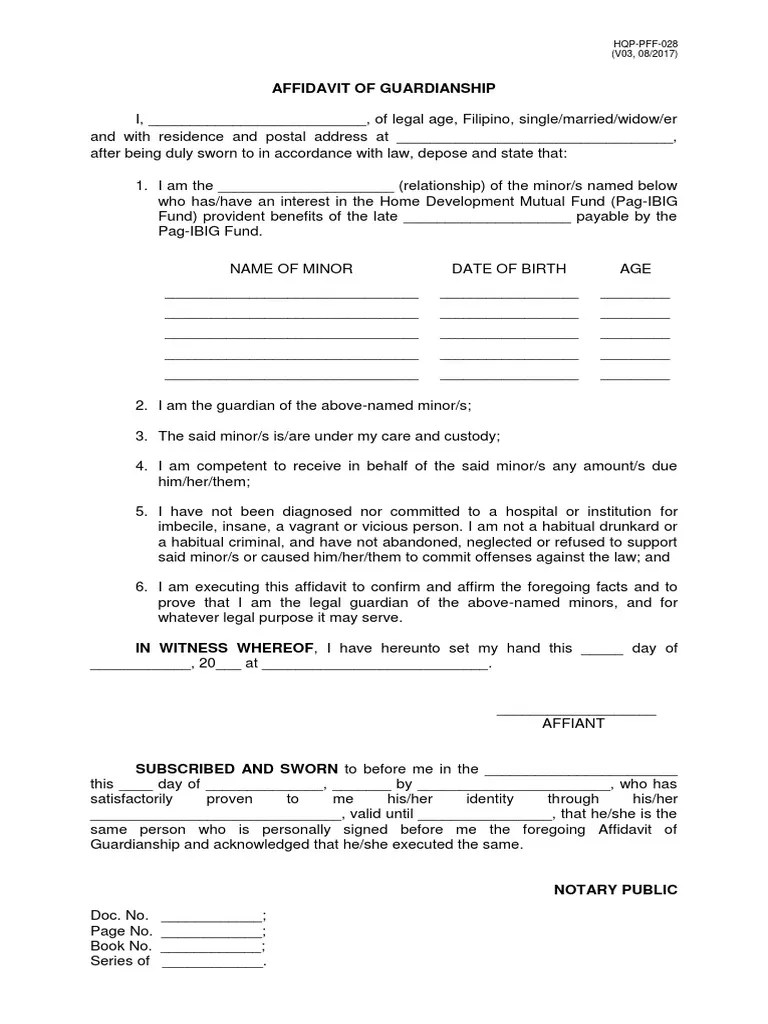 Affidavit Of Guardianship HQPPFF028 (V03, 08/2017) Affidavit