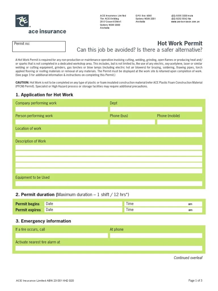 Hot Works Permit To Work Duplicating Work Permits SSP