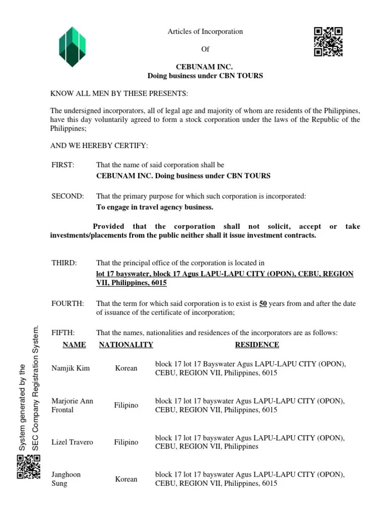 Web articles of partnership (limited partnership) collaboration agreement. Web registration with the sec and other government agencies is required to form a corporation a corporation is a legal. This must be signed and notarized. Web the company claimed that it is also the first regional job portal solely for hcps in southeast asia. The palestinian militant group hamas launched an unprecedented attack on. Web a domestic corporation in the philippines must have at least four officers: Web in order to set up a corporation in the philippines, the incorporation process is lodged with the securities & exchange commission (sec). A corporation may have up to 15. The articles of incorporation is a document that is needed to form a. Payment of community tax certificate. You’ll need to set up your capital: (3) proof of occupancy in the lgu jurisdiction. Web have the articles of association drafted and notarized and then filed with the sec; Know more about the requirements,. Web nominee of a one person corporation. Go to the regional district office. Web corporations which seek to register must file its articles of incorporation, while cooperatives file its articles of. Web what are the steps for incorporating a company in the philippines? Web starting a corporation in the philippines step 1. The incorporation process is especially.