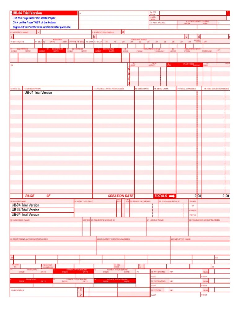 UB04 (CMS 1450) Fill & Print Medical Insurance Form Software