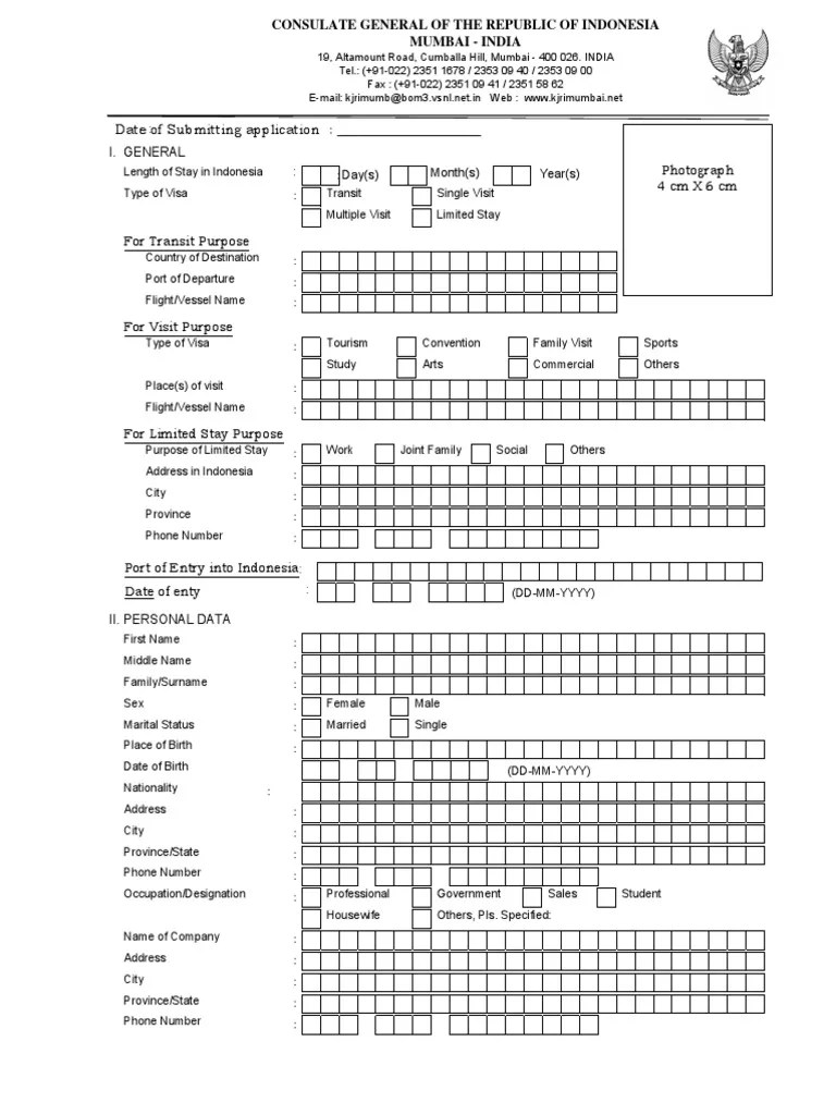 Visa Application Form Embassy Of The Republic Of Indonesia printable