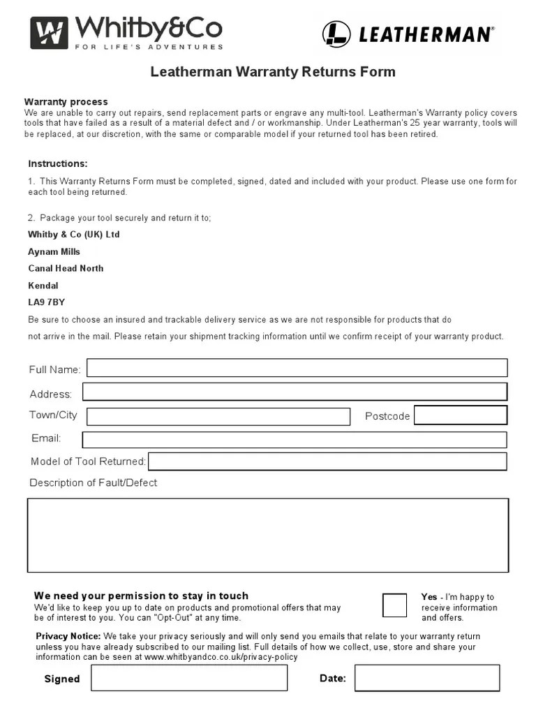 Leatherman Warranty Form Printable Printable Forms Free Online
