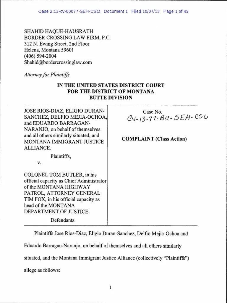 Montana Highway Patrol lawsuit Secure Communities And Administrative