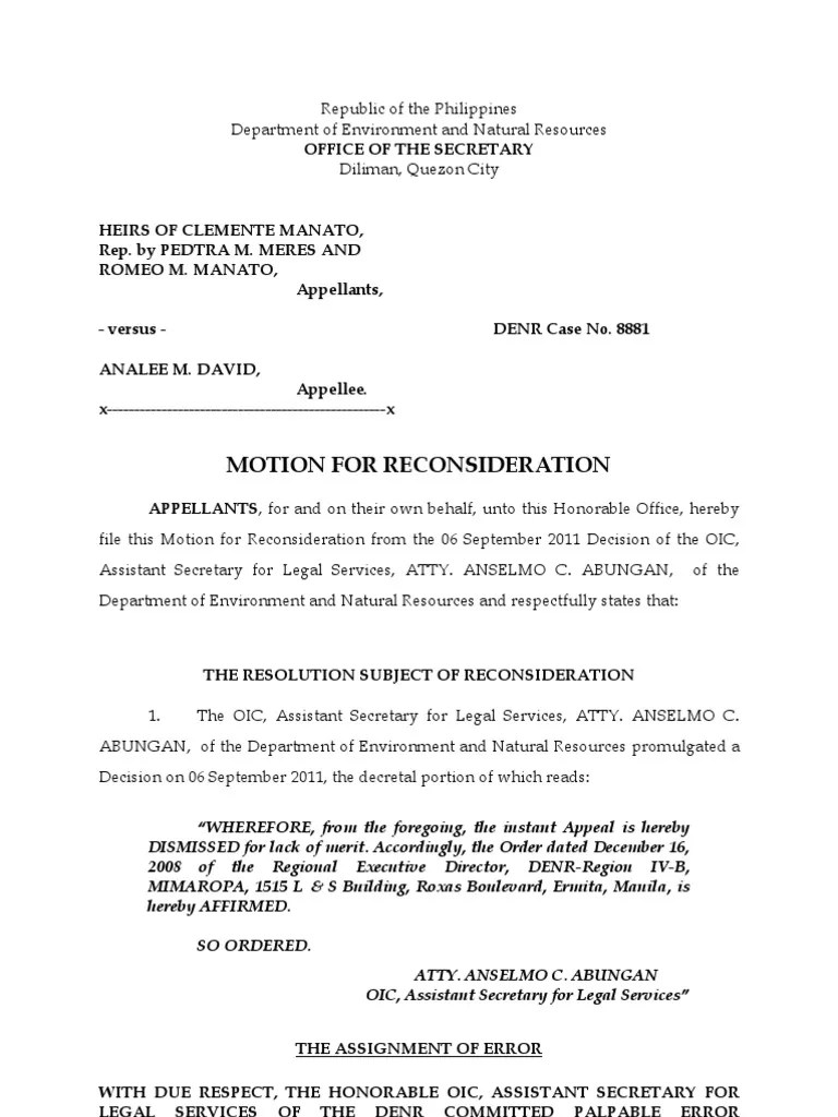 Motion For Reconsideration RTC Order PDF Lawsuit Government