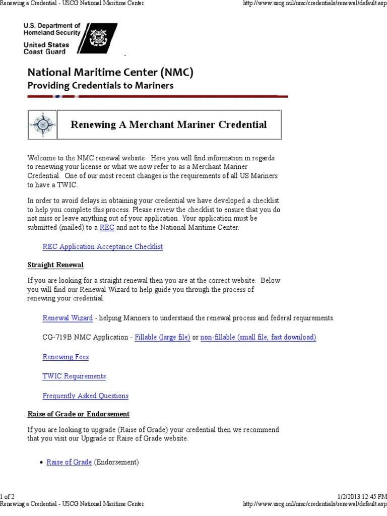 National Maritime Center (NMC) Renewing A Merchant Mariner Credential
