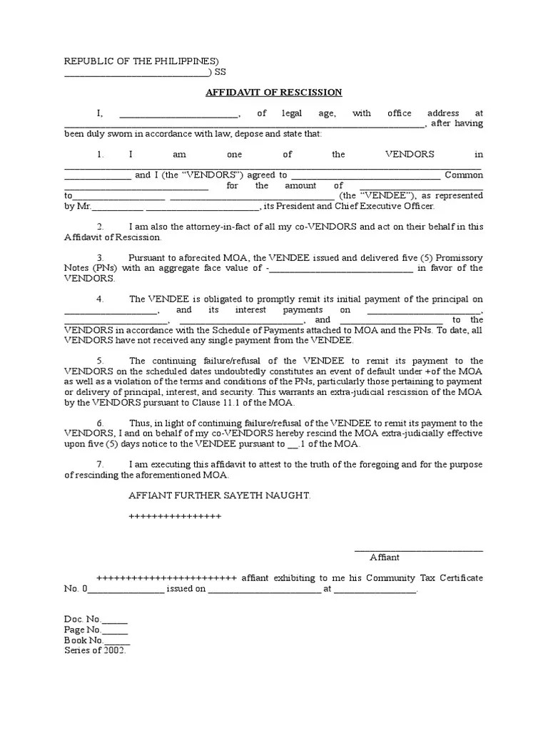 Affidavit of Rescission PDF