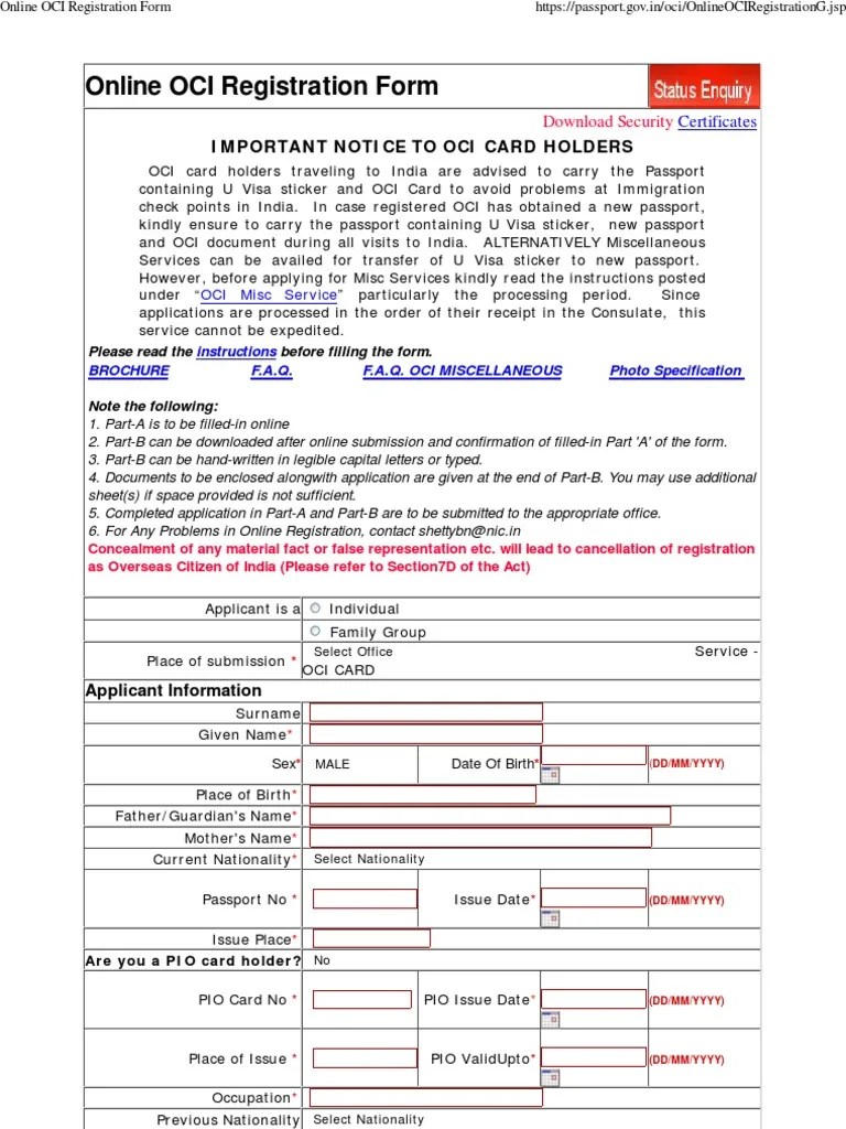 Person who has not attained the age of 18. The oci application form will ask for your full name, date of birth, place of birth, nationality, and details about your parents. Web oci government sample form step by step instructions to fill online government form for oci application you must go to icac's. Web you should submit your oci (overseas citizen of india) application at the vfs india consular application centre.