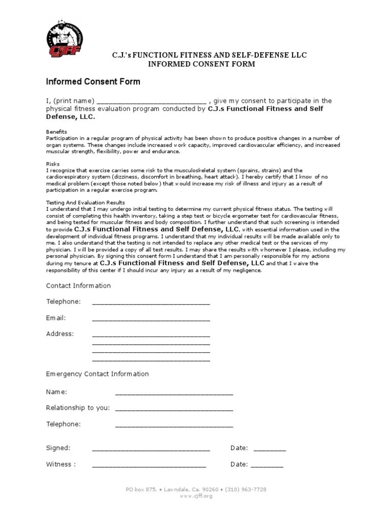 3 CJ's Informed Consent Form PDF Physical Fitness Physical Exercise