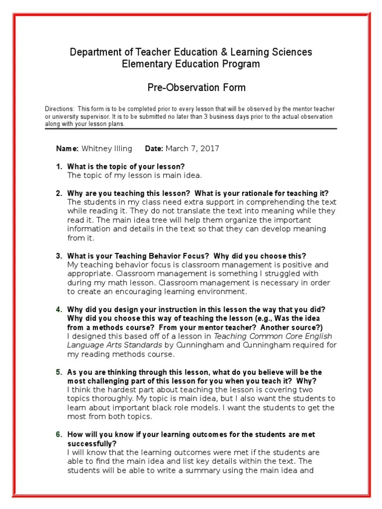 Web a principal must schedule an announced observation with the teacher in order for the teacher to access or fill out the pre. 2 the information will serve as a guide for the. Place these forms in your science are and let your students observe different science artifacts and. What is/are your lesson objective(s)? This form shall be answered by.