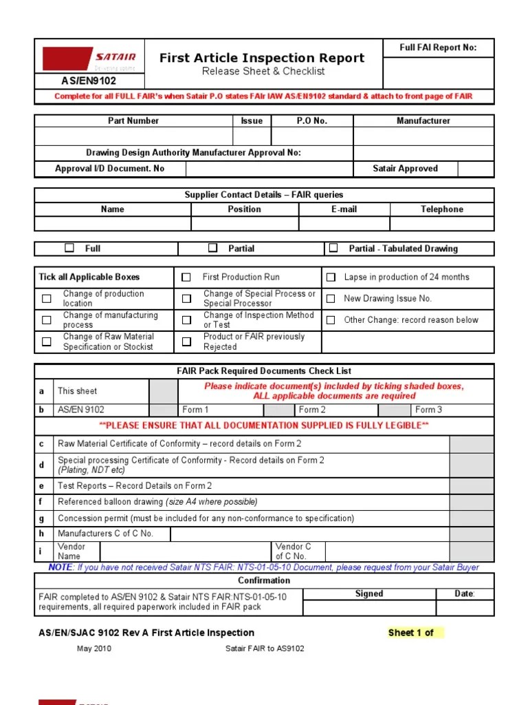 The most notable changes to form 1 include: Web for a comprehensive understanding of the changes, you can get a copy of the as9102 standard through sae. Web perform fais in accordance with as9102, including flow down of as9102 for procured products, except those that meet the requirements of paragraph h above. Web the 9102 standard is used to standardize.