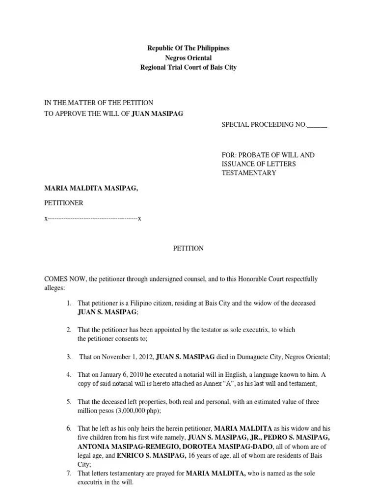 Application (Informal) / Petition (Formal) For Probate Of Will Or Appointment (Mandatory) Renunciation Of Right To Administration And/Or Nomination.