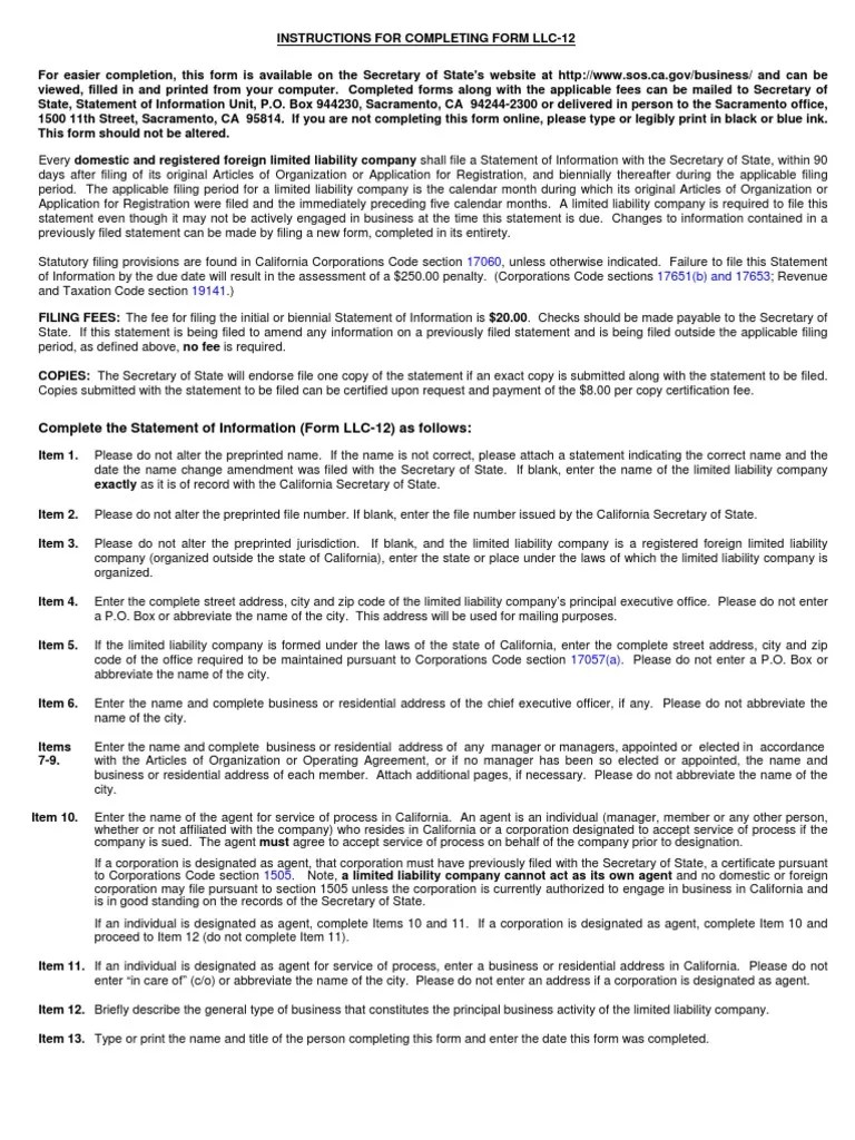 Secretary Of State Form Llc-12 - Limited liability company name (enter the. If you registered in california using an alternate name, see. Web forms, samples and fees. Enter the name of the limited liability company exactly as it is of record with the california. For easier completion, this form is available on the secretary of state's website at. Web new jersey lieutenant governor and secretary of state. Limited liability company name (enter the exact name of the llc. Web you can establish an llc in california without filing fees during a temporary period ending june 30, 2023. Web over 140 business filings, name reservations, and orders for certificates of status and certified copies of. California and registered foreign limited liability company.