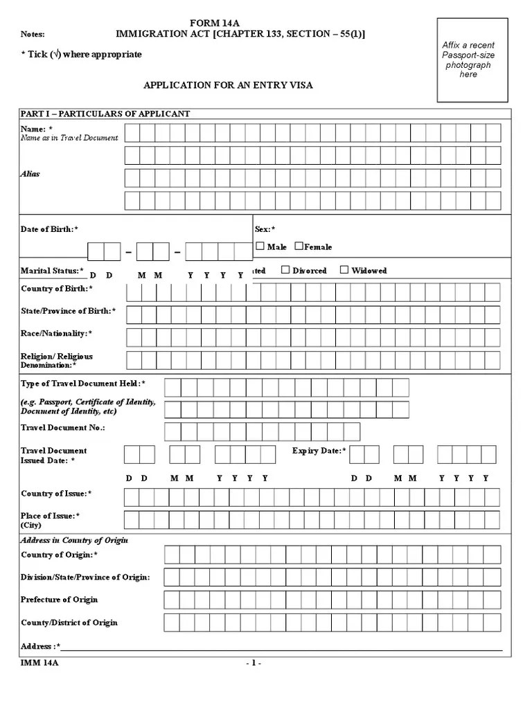 Singapore Visa Form 14A - To be filled in the same sequence as it appears on your passport/travel document. Check the box where appropriate application for. Web in this video you can watch how to fill your singapore visa form 14a. Web how to fill out and sign singapore visa form 14a filled sample online? Please note that filling an incomplete form 14 a for. Web imm 14a this form is issued free affix a recent notes: Web to apply for an entry visa for business or social visits, you will need the following documents: Web to obtain a singapore visa, you must ensure that form 14 a is filled in legibly. Web to apply for an entry visa for business or social visits, you will need the following documents: Web (a) completed and signed form 14a.