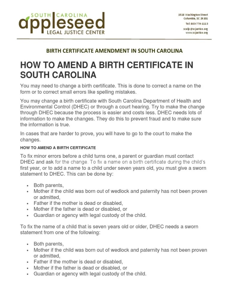 Web users without a subscription can easily get an account. You may change a birth certificate with south carolina department of health. To collect information required to request a certified copy of a. To do this, you will need:. Web how do i amend a birth certificate in south carolina?