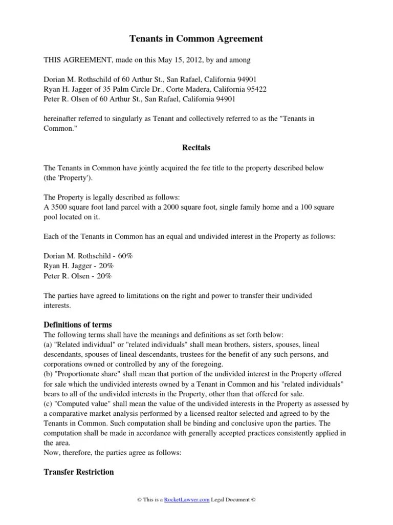 Web the owners intend to lease the property at all times and no owner shall have the right to occupy or use the property or any portion. Web the tenant should read the rental agreement before signing. What is it and where can i find it? Web a tenancy in common allows you to own an unequal share of the.