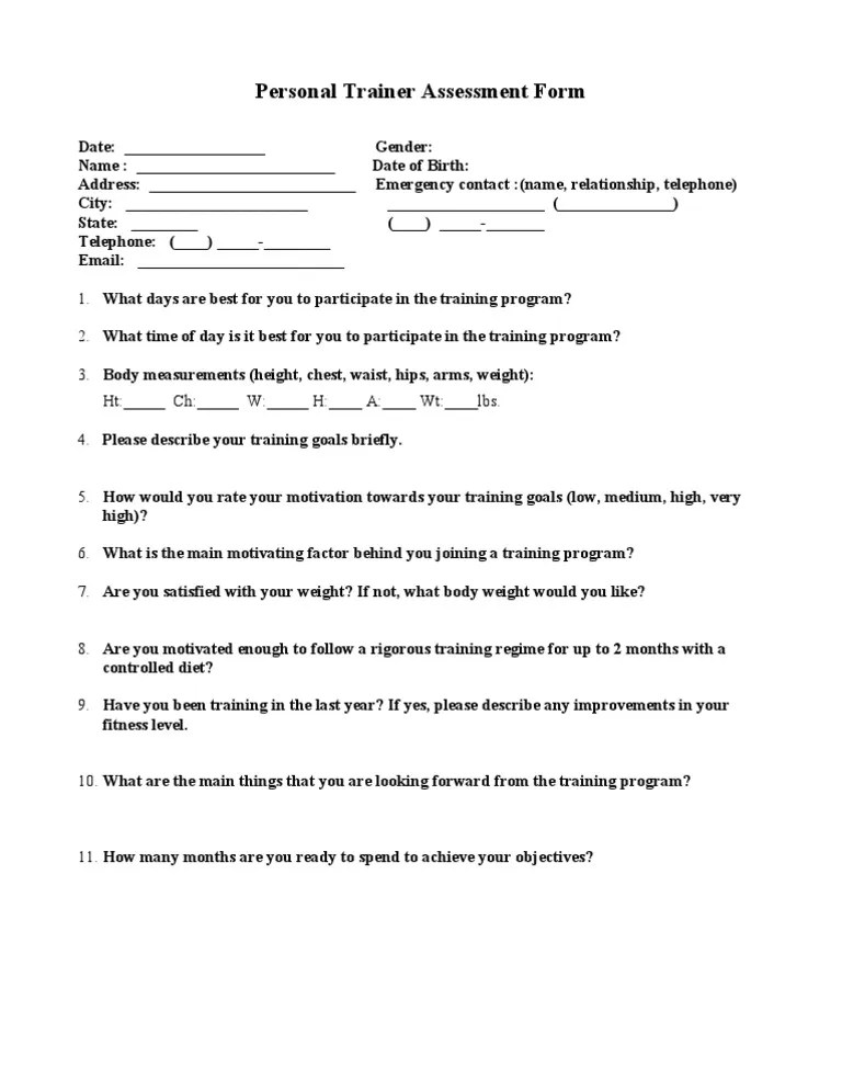 Personal Trainer Forms Pdf Fillable Printable Forms Free Online