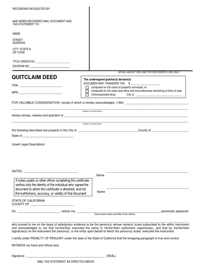 Quitclaim Deed Template Free Template Download,Customize and Print