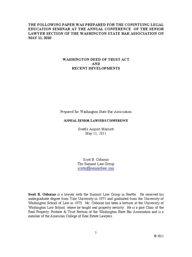 Washington Deed of Trust Act 2012 Deed Of Trust (Real Estate