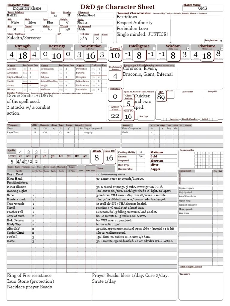 W 5E D&D Character Sheet 1pg v10 (Form) Role Playing Games Fantasy
